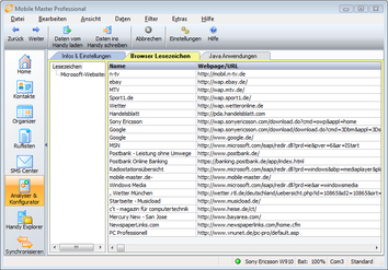 With Mobile Master you can manage bookmarks of the phones browser easily, and you can import your bookmarks from Mozilla Firefox, Internet Explorer or Opera.